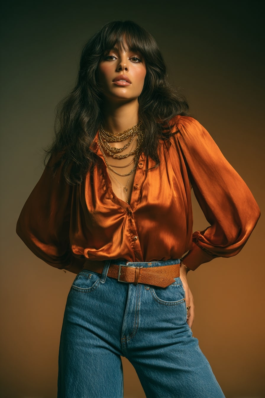 - Shag layers sit staggered through crown and mid-lengths, keeping weight off cheeks and pulling movement outward, not sideways.