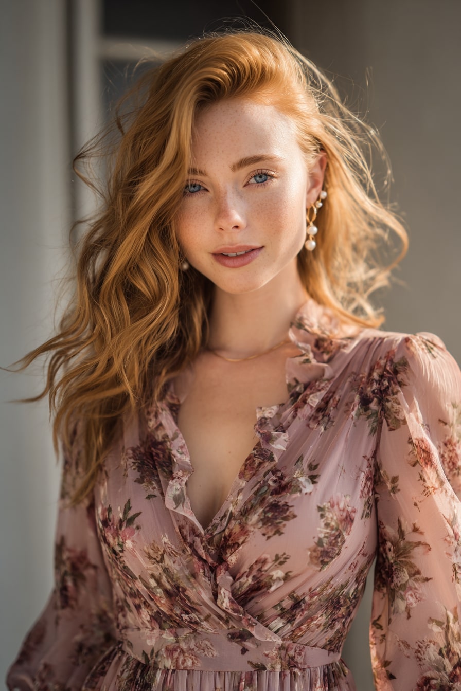 2. Soft Bloom Layered Waves with Floral Midi Dress
