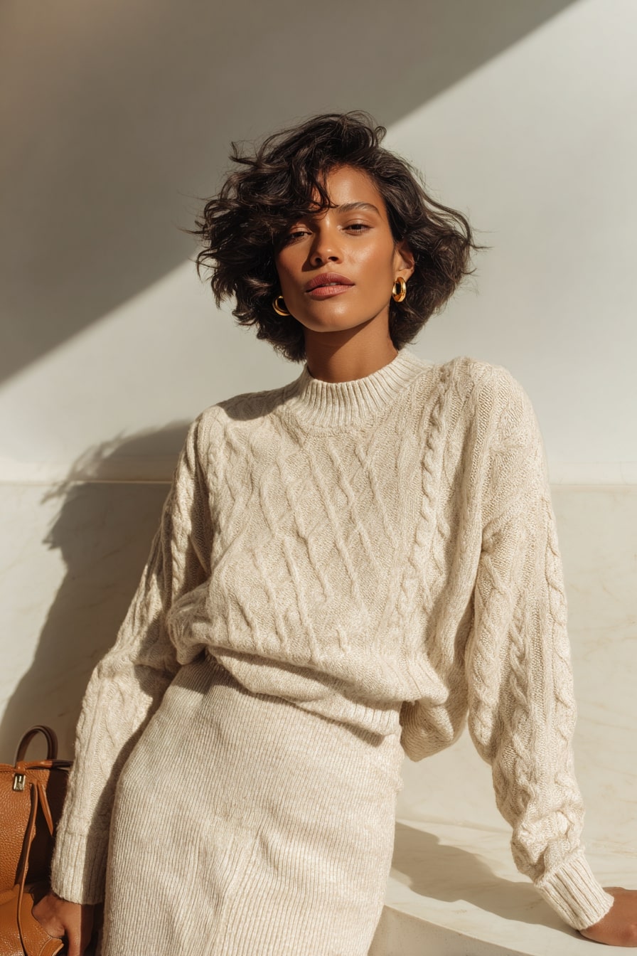 8. Effortless Volume Shoulder-Length Layers with Knit Set