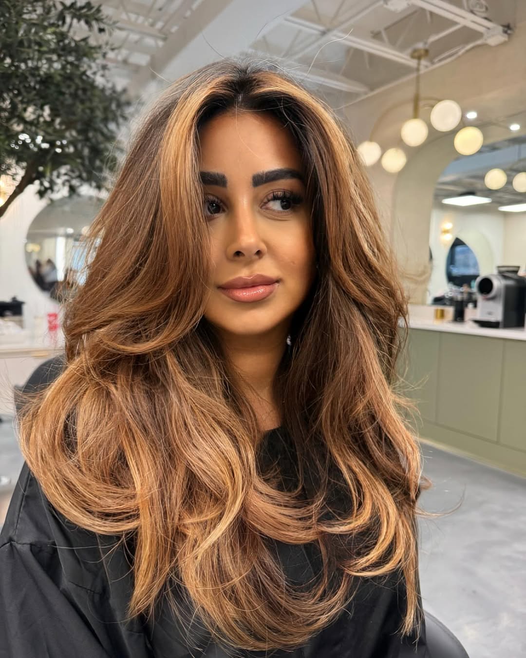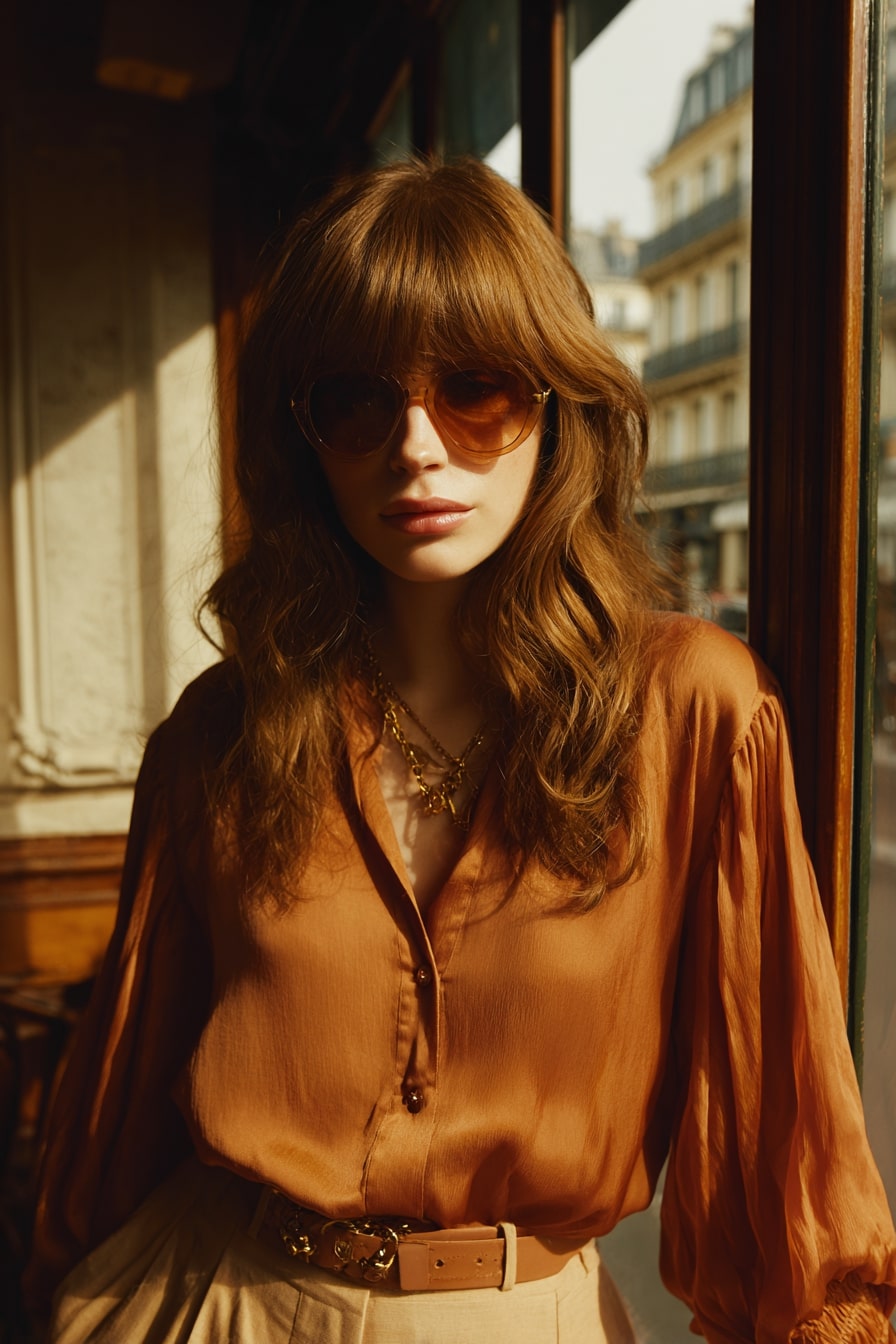 A flowing, face-framing style that lends oval features a breezy softness and confident, cinematic ease.