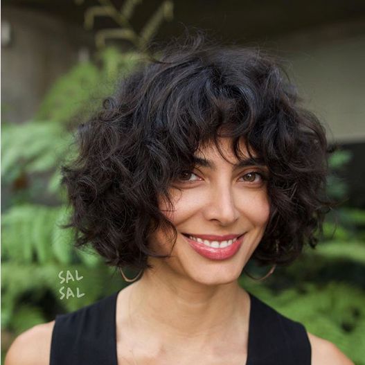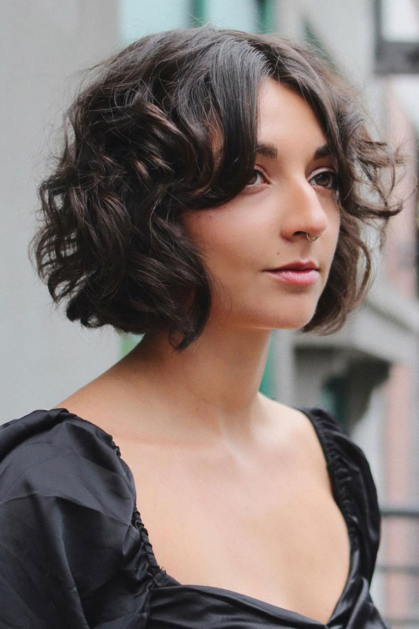 waves frame the face, giving this French bob a chic yet effortless vibe. The natural curls add bounce and movement, creating a style that feels both modern and timeless.